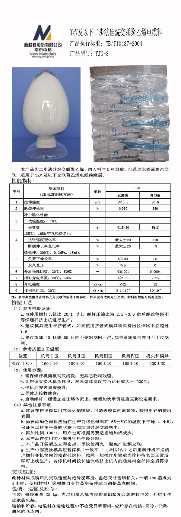 3kV及以下二步法硅烷交聯(lián)聚乙烯電纜料
