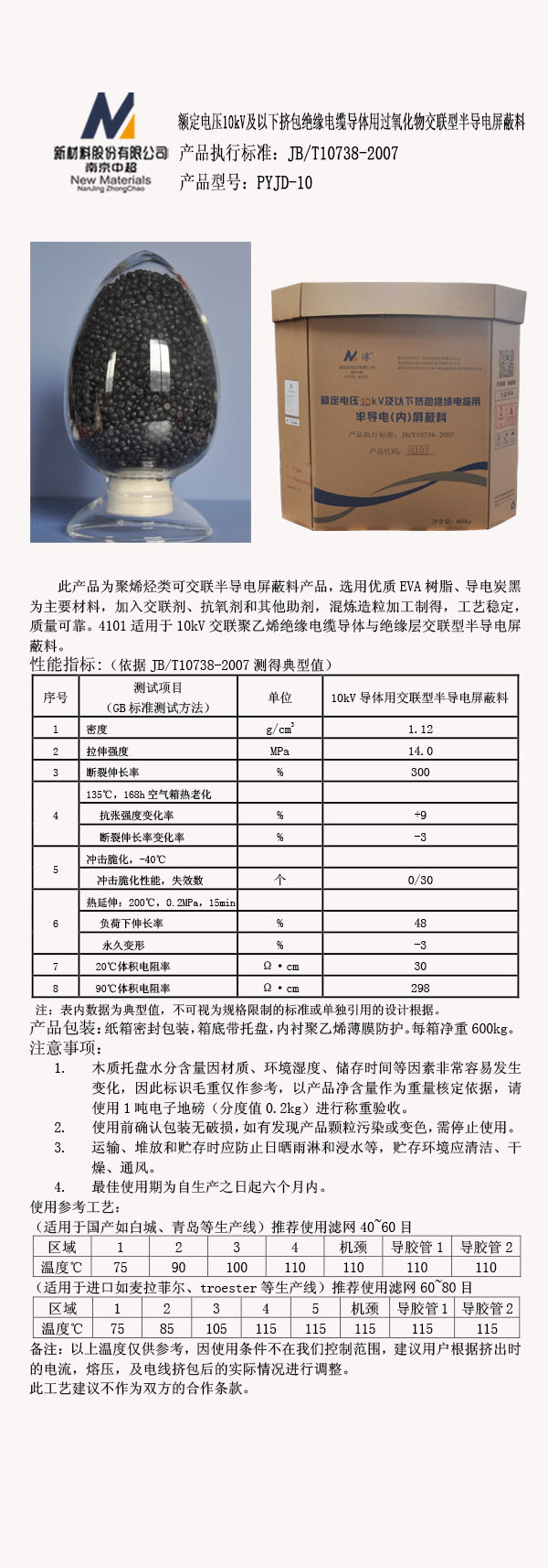 額定電壓10kV及以下擠包絕緣電纜導體用過氧化物交聯(lián)型半導電屏蔽料