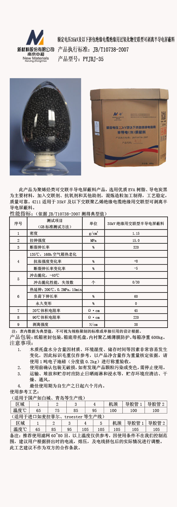 額定電壓35kV及以下擠包絕緣電纜絕緣用過氧化物交聯(lián)型可剝離半導(dǎo)電屏蔽料