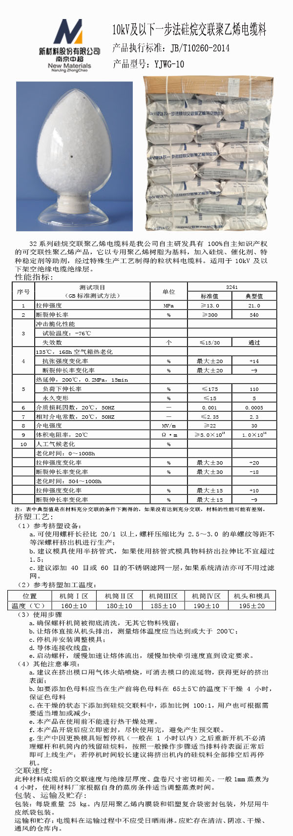 10kV及以下一步法硅烷交聯(lián)聚乙烯電纜料