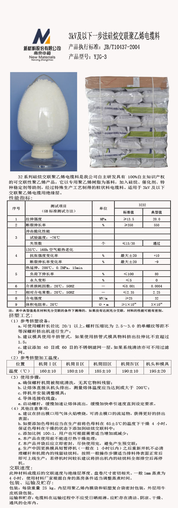 3kV及以下一步法硅烷交聯(lián)聚乙烯電纜料